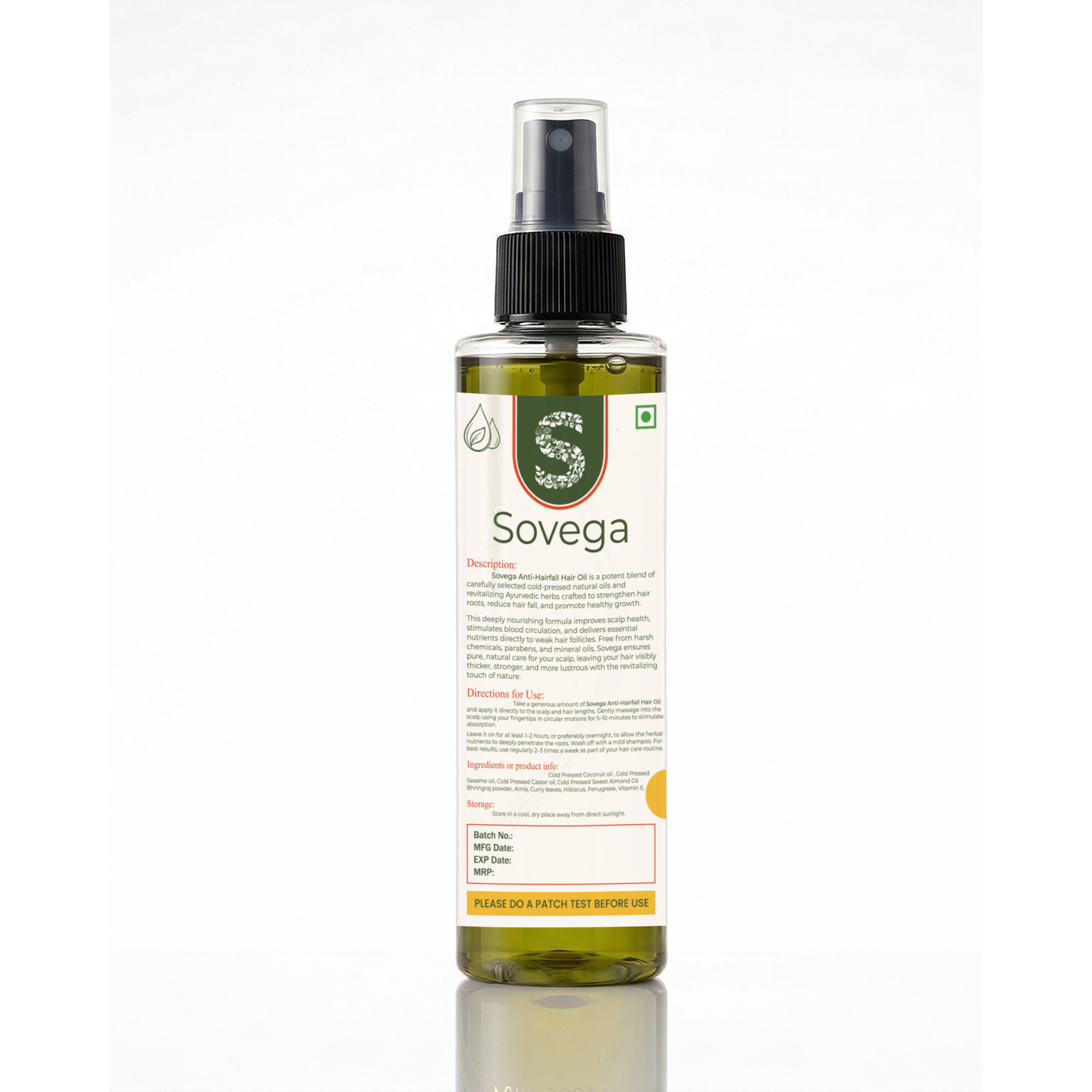 Sovega Anti-Hair Fall Oil is a concentrated herbal blend designed to strengthen roots, reduce breakage, and support healthy hair growth. It deeply nourishes the scalp, improves circulation, and restores natural shine. With consistent use, hair feels thicker, stronger, and more resilient — promoting long-term scalp health and visible vitality.
